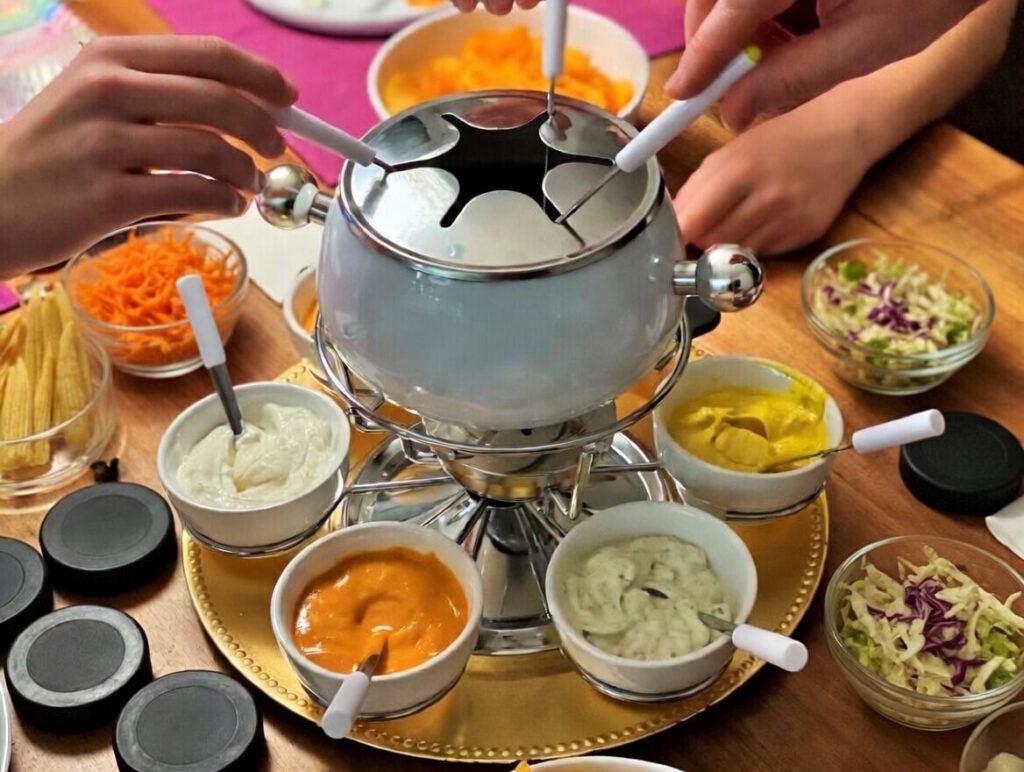 Au menu de la soirée: Apéritif de bienvenue, suivi par une fondue chinoise, accompagnée de riz, de salades et de desserts, de quoi passer un excellent moment à table en bonne compagnie.